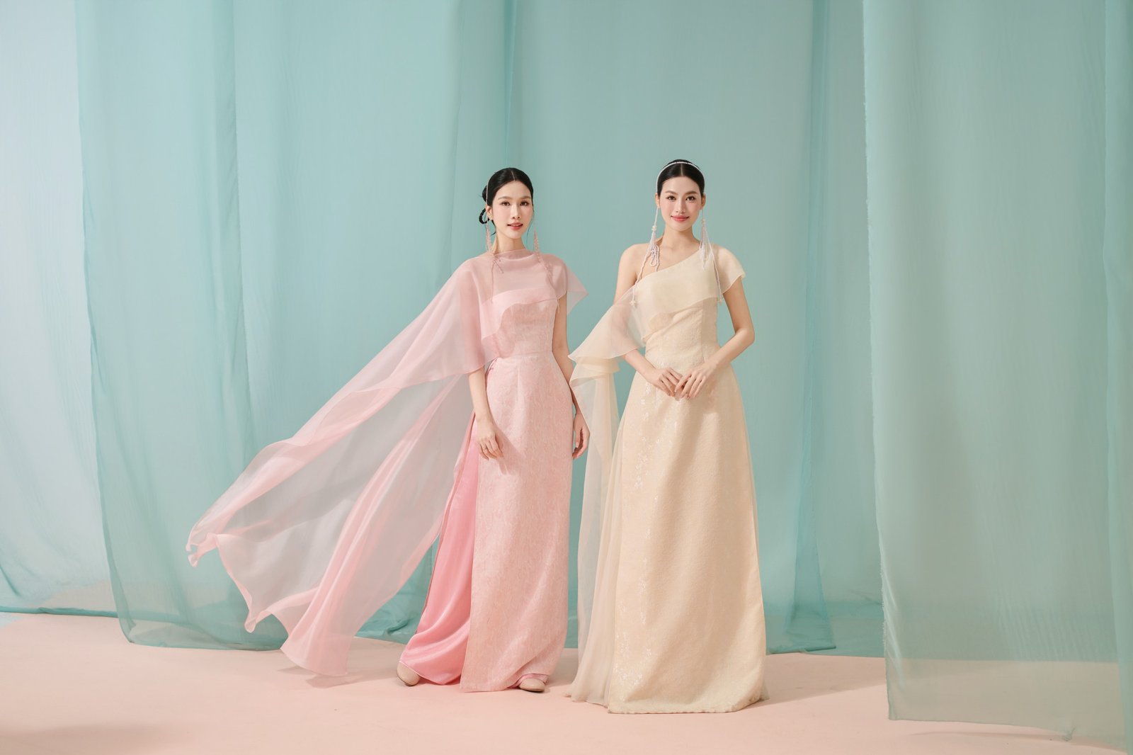 ÁO DÀI DRAPING BEIGE