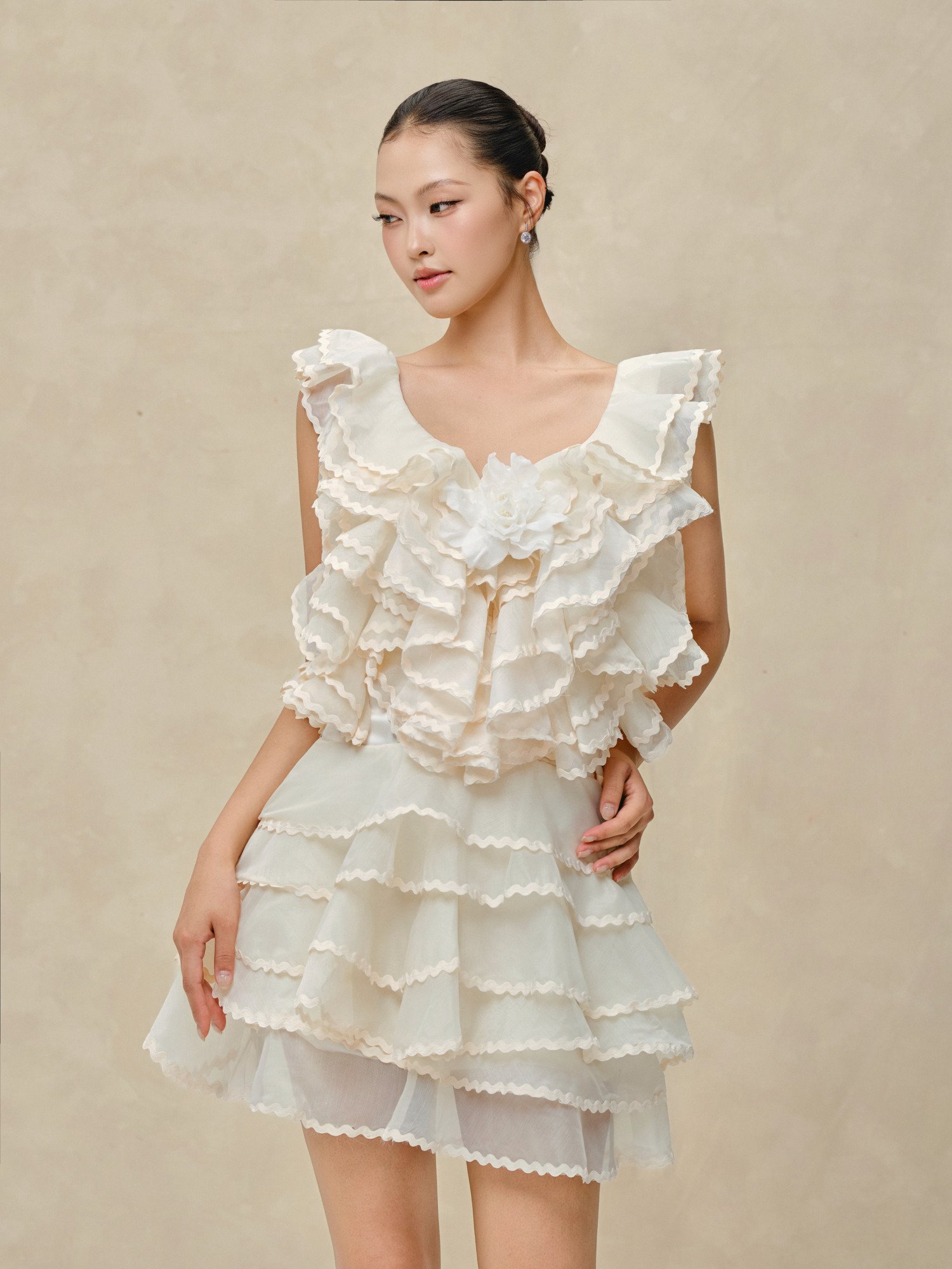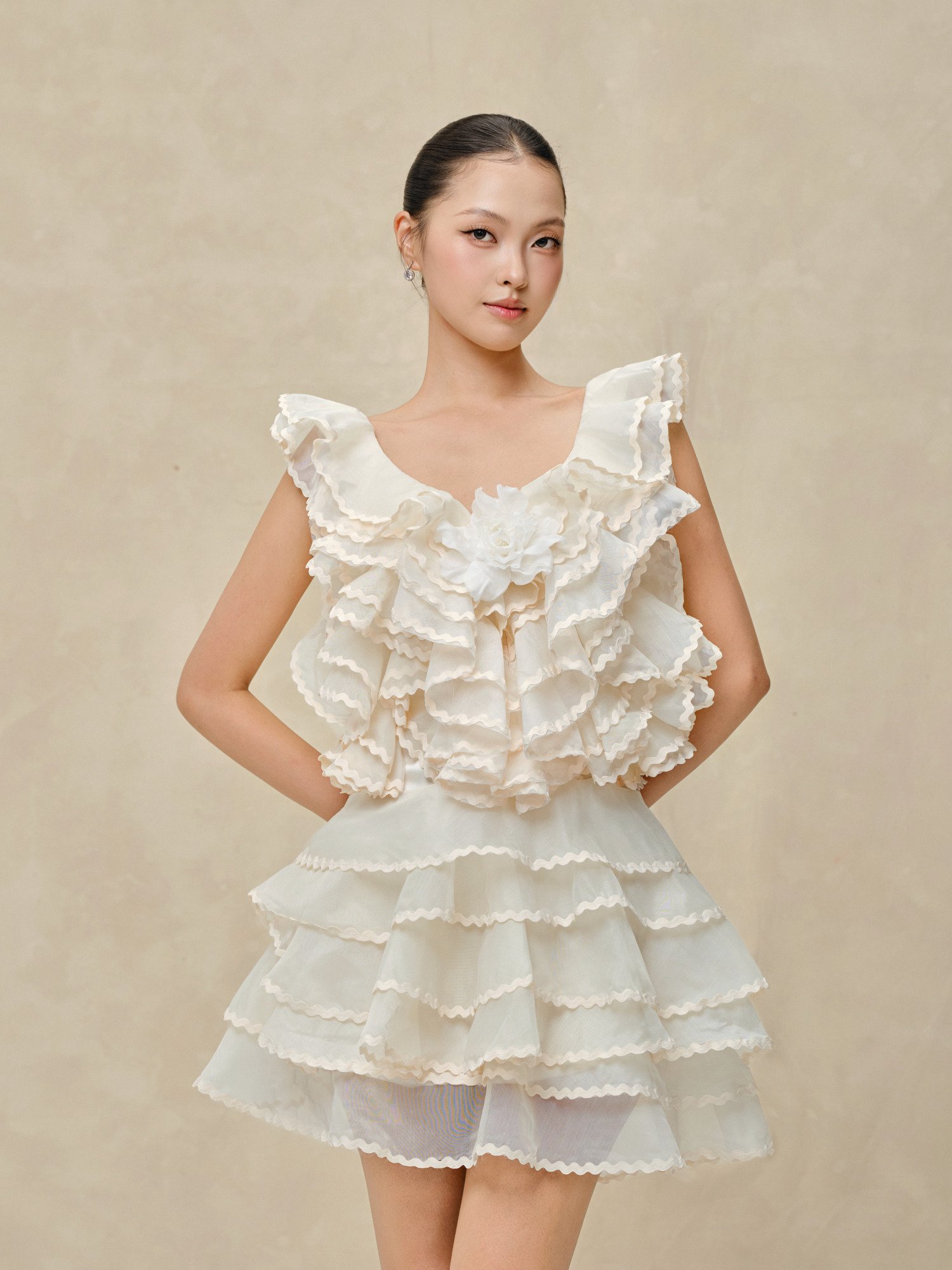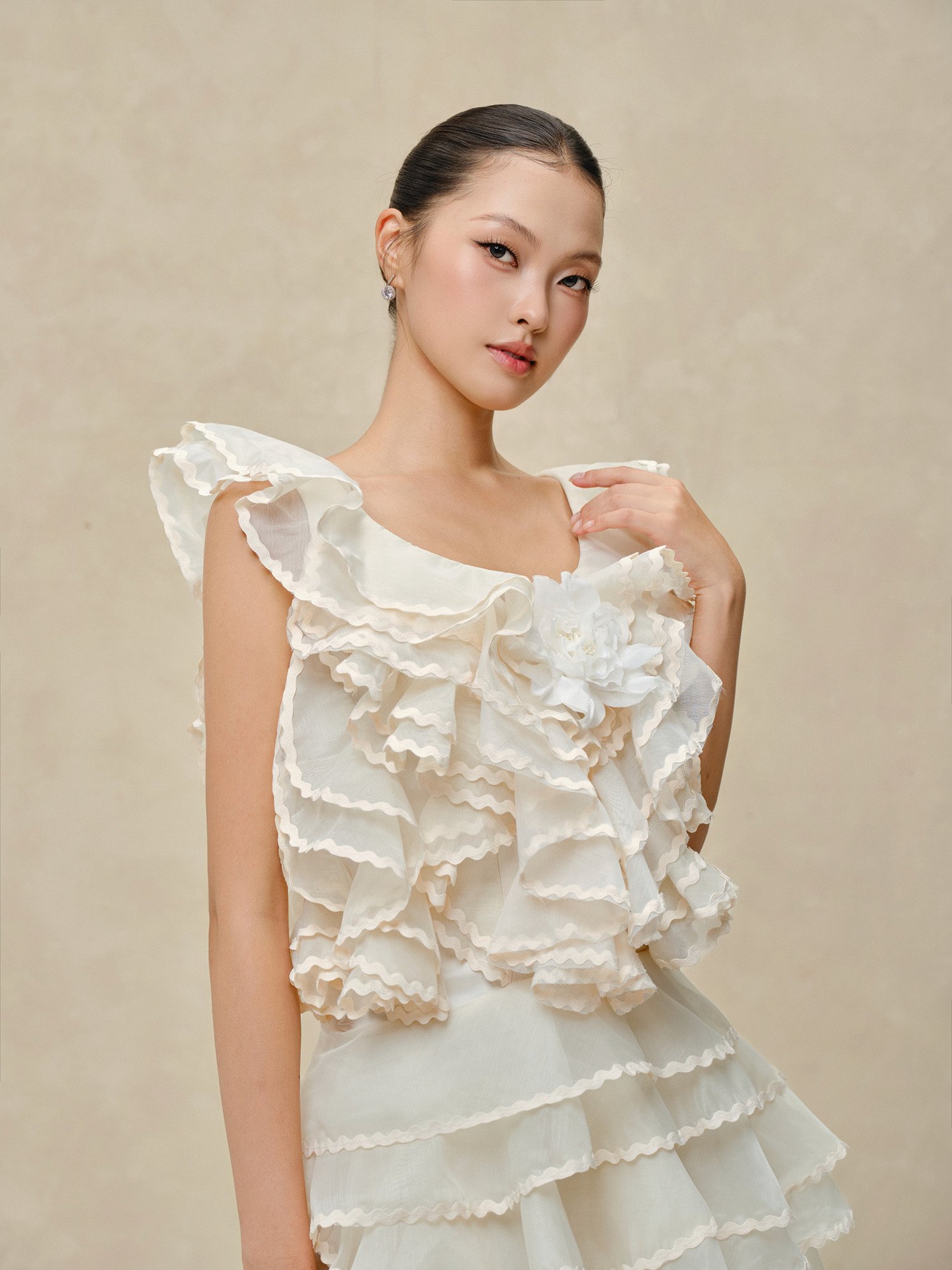 Có những khoảnh khắc bạn bước vào và cả căn phòng quay lại nhìn — không vì nàng cố, mà vì nàng tỏa. Với thiết kế phom dáng baby-doll sang trọng, tự do mà không mất đi sự quyền quý tầng bồng organza thủ công, hoa nổi khối tinh tế tôn lên vẻ đẹp thuần khiết mà quyền quý của người phụ nữ đích thực.
